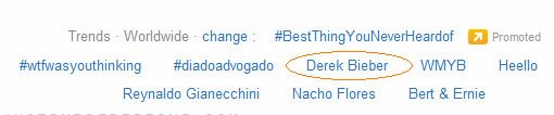 And guess what? “Derek Bieber” became a trending topic on Twitter